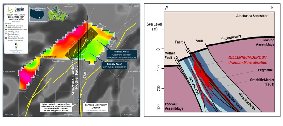 The North Millennium property is located within the Athabasca Basin on the boundary between the Wollaston Domain and the Mudjatik Domain. It is 7km from the Millennium deposit and lies on the extension of the Millennium deposit’s Mother Fault.